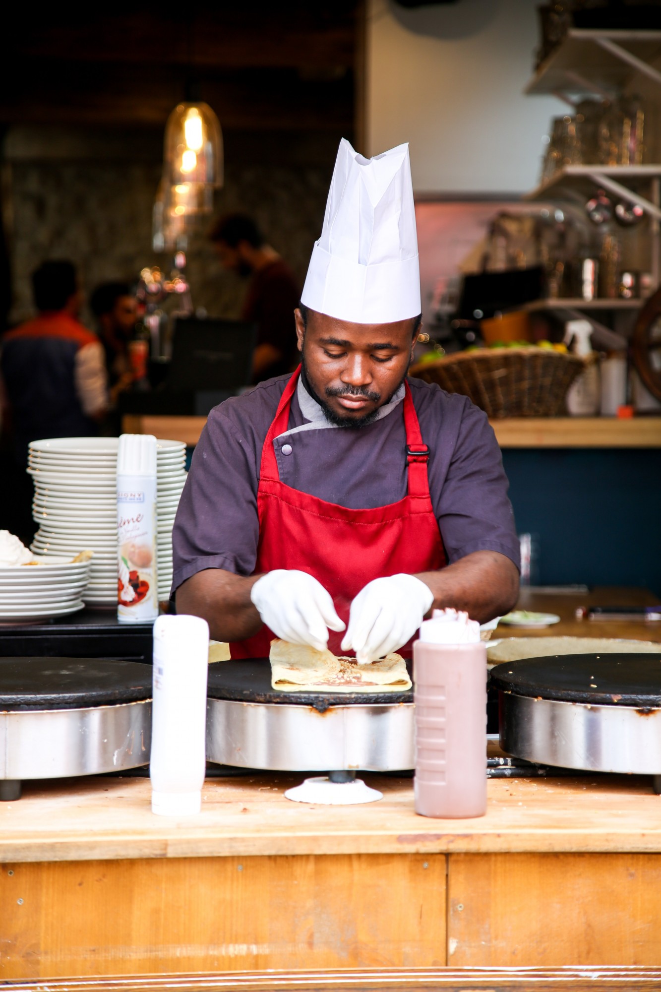 Fill with fresh fruit, whipped cream, Nutella spread, or a simple dusting of sugar.